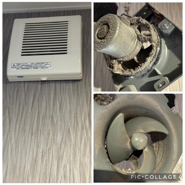 意外と気にされない小さな換気扇!トイレや脱衣所やリビングなどに設置してありますが、意外と掃除されていないんです 写真の様にホコリが付着すると羽が重くなりモーターに負担が掛かりますので異音がしたり音が大きくなり、結果的に壊れてしまいます こちらのお宅も清掃後に音が小さくなったいう感想を頂きました 是非、壊れる前に清掃を!
